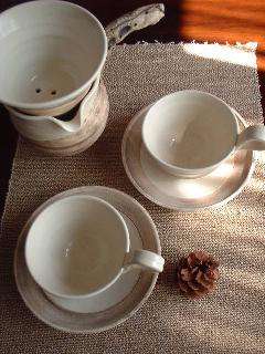 ソーサーは高さが3,5センチあるように一般のものより深さがあります。