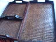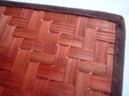 ・AJ007 バンブーランチョンマット ・価格 347円→315円(税込・送料別) ・サイズ 24.5*36.8cm 丁寧に編みこまれたバンブーのランチョンマットです。 色合いは少し、、、赤茶色。 縁は布でしっかり補整されています。 |