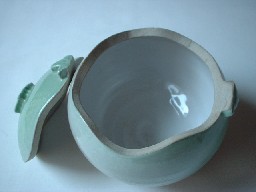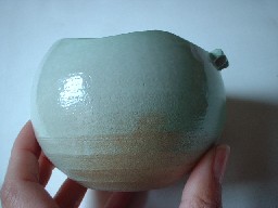 中側には白の釉薬が綺麗に掛かっています。表面は薄い緑と土の地の色までのグラデーションをお楽しみください。