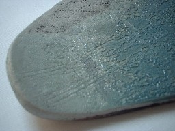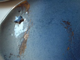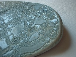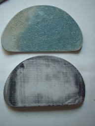 ![]() こちらの作品は煙で燻す、「燻化焼」となっています。 手触りはサラサラ(ザラザラも多少は。)しています。 もちろん、デコボコ感はありますよ〜。 |