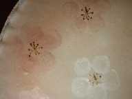 SP001−2 梅の花が描かれています。白の梅の花も。。。 ご覧頂けますか? 粉引きには薄紅色の御本手が見られます。 |