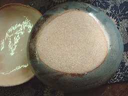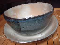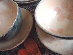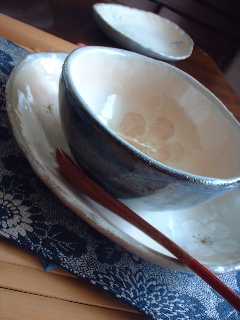 外側の色合いは宇宙色(^^)と言ってしまいたいような色合いです。コロンとした碗も皿も単品で使ってもよし!