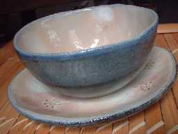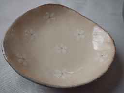 ![]() お皿は単品でも十分に使えます。 こんな小皿欲しかった〜。なんて、言いたくなり そうです。また、受け皿を楕円皿にしても 雰囲気が変わって楽しめますよ〜。 右の画像は楕円皿が受け皿になっています。 |
