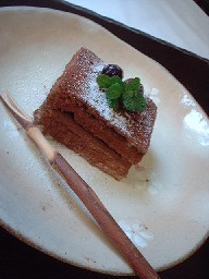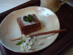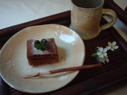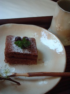 春!らしい、器にちょっとシックなチョコケーキ。。。お茶しましょ。。。