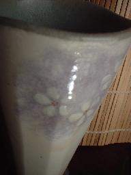 ・SC007 フリーカップ 価格 1680円(1客) サイズ 径7×高さ13.5 飯碗・楕円鉢と同じ模様の 所々、面取りされ持ちやすくなって 台の部分にも一工夫がありますよ〜。 |