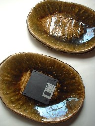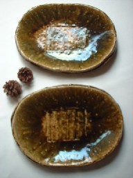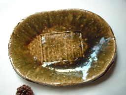 茶織部!?っと言いましょうか。このような↓色合いの織部大皿です。