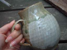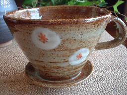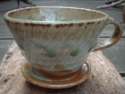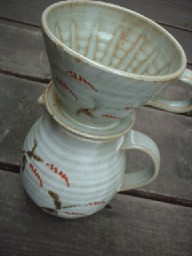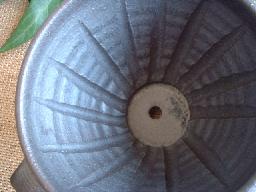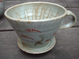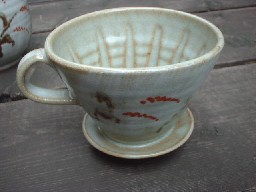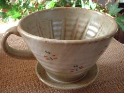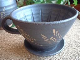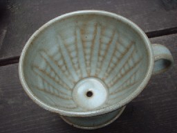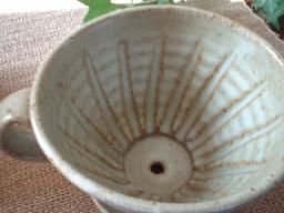 ![]() ドリッパーには下の中心に向かって筋が入っています。 作者の丁寧な作品作りが見えますね〜。 |