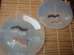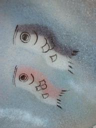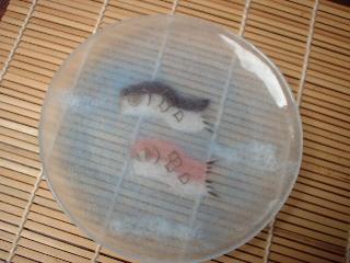 銘々皿との大きさの比較です。こいのぼりの描かれている位置も各々違います。