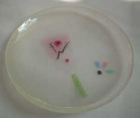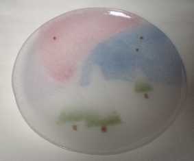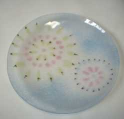 □■コスモス(10月)小皿■□ (KK002−10) 薄〜い淡〜いピンク色のガラスにコスモス |