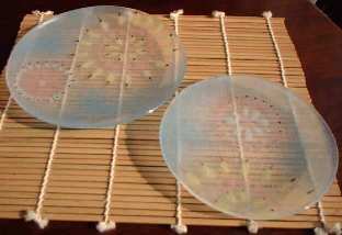 小皿と銘々皿をセットにして撮影しました。大きさが同じ位に見えますが・・、銘々皿のほうが2センチ位