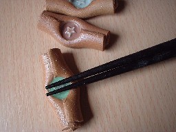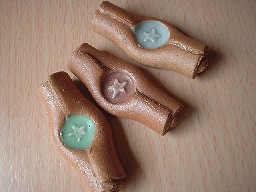・MH001 箸置き2種類(Bタイプ) 価格 315円(1客) サイズ 5.5*2.5*h1.8センチ(最大幅) ポップでかわいい箸置きです。くるくるっ、と巻かれ真中をきゅっ!と押して 星をポイントに〜〜。