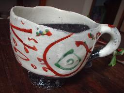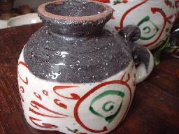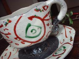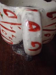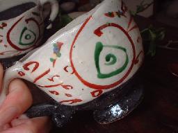 ![]() くるくるっ。と巻かれていてアクセサリー 感覚!また、右→→→→→写真! 取っ手部分にも丁寧に赤絵の絵付け が施されています。 |