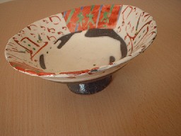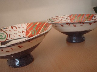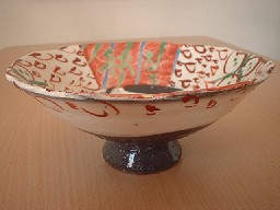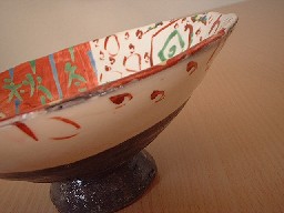 ・NA0011 赤絵高台丸鉢 価格 3150円(1客) サイズ 口径15.5〜16×高さ6.5〜7 まったりしたほんのり白化粧に赤と緑の絵付け、 |