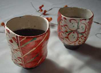 赤絵の湯呑に「丸紋」の絵柄が入荷しました!