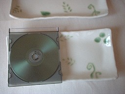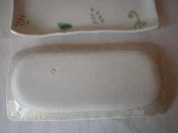 裏側にも少し、透明釉が掛かっています。CD2枚分の大きさ!四隅には丸みが持たせてあり、たちあがりもあります。
