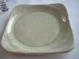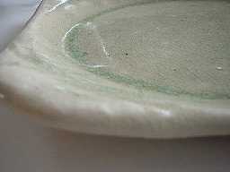 四角は丸みが持たせてありますね。厚みは4ミリ程度。。。裏側にも釉溜まりがあります。