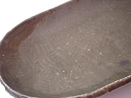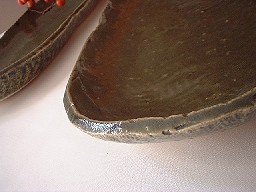 見え辛いですが表面には布目が残っていて、釉薬がその布目に沿って濃淡がついています。