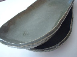 この長皿(織部)が私と陶房大石さんとの出会いでした〜。