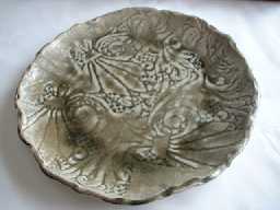 ・RE018 灰釉地紋皿 サイズ 径28.5*h3センチ前後 sold out!! 有り難うございました。 |