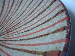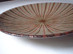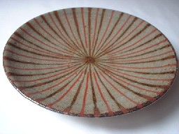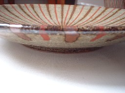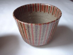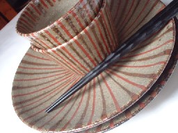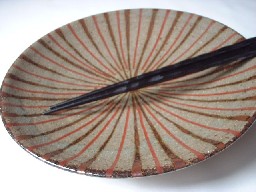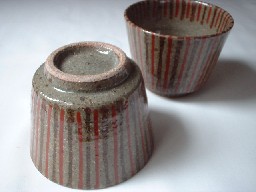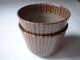 なつかしいような、そんな印象をもつこの麦藁手。朱と茶のシンプルな線模様。