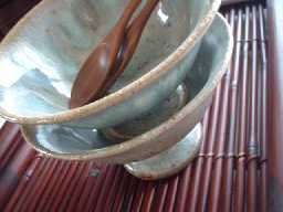 ・RE013 わら釉デザート鉢 サイズ 径12.5*h7センチ こう言う形。。。なにも、デザートだけではありませんね。おつまみ入れや小鉢感覚で使っても楽しめるのでは ないでしょうか〜。 また、かき氷用の器にもイイですね! 色合いはグレー掛かった空色? 縁部分は所々茶が見えます。 手触りはツルツルしています。 sold out!! 有り難うございました。 |