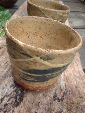 藍色と白、灰釉との見事なコントラスト! 厚みは2〜3ミリ、、、ざらっとした手触り。 |