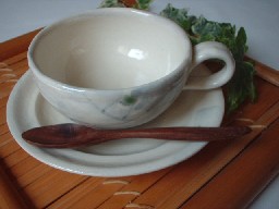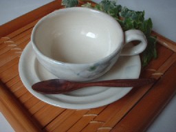 ![]() 紅茶カップを。。。と探していたときに、やっと 出会えたC/Sです。 まったりとしたクリームに近い白、 水色の絵柄にポイントのみどり。 ほんわり〜。やわらかな印象のC/Sです。 |