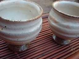 ![]() 太郎さんの粉引きのフリーカップです。 飲み物にも、また、ちょこんと小鉢感覚でも使えますね。 デザート好きな私はまた、異種の器でデザートを 頂ける!!っと大満足です。(^^) そして、太郎さんの粉引きはそのままお使い頂けるよう 事前に処理されていますよ〜。 |