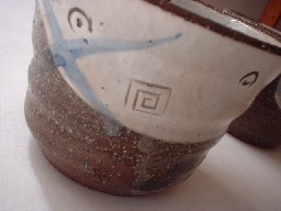 彫りでくるくる模様、呉須絵で大きな×。お子様にも使っていただけるかわいいソバチョコの入荷です。