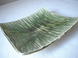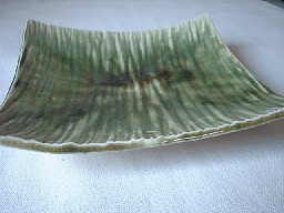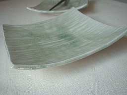 ・商品名 YM015 ひも高台角皿(灰釉・織部) ・サイズ 17*17センチ 高さ2.5〜4.7センチ ・価格 1575円(税込・送料別) |