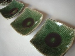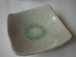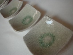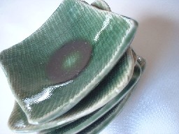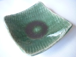 ・YM012−1 豆皿(織部) 価格 315円(1客) サイズ 7センチ×高さ2.5センチ(50g) おつまみやジャム・ソース小分けしてお皿に並べたり 箸置きに使ったり 手軽に演出が楽しめる器です。 灰釉と織部、お好みで。。。 たちあがりがありますので、 高さは四隅の一番高い所です。 |