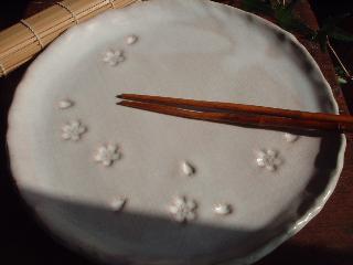 ・SC006 桜大皿 価格 3150円(1客) サイズ 径28×高さ2.5 ほんのり淡〜い桜色のお皿です。 縁部分が少し立ち上がっていて 厚みも1センチ近くあり、どっしりと 下の写真の方が実際の色合いに近いです。 |