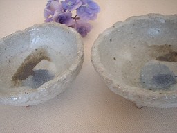 ・YS018 平親指小鉢 価格 840円 サイズ 口径10*高さ3.5〜4 三つ足の付いたかわいい小鉢です。縁はナミナミ、折り返しもあって厚みがあります。 もう一品!って言う時に、ちょこんと存在させて しまいたくなるうつわです。 もちろん、アクセサリー、シュガー、ミルク入れにも いいですよね〜。 在庫「1」 |
