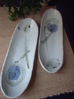・YS001 たたら楕円長皿 価格 1890円(1客) サイズ 30.5×9.6×高さ2.7〜4(端) まったりとしたマット系の白地に