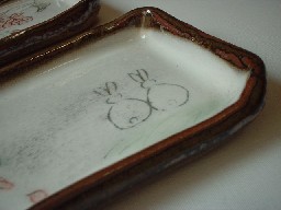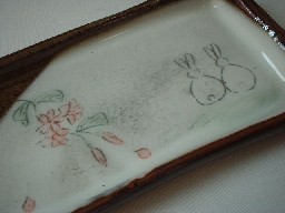 赤土に白化粧、丁寧にかわいい絵付けが施されています。