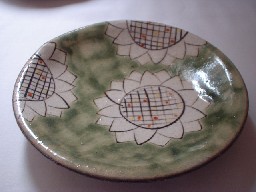手触りはざらざら。下のものより少し小さ目のひまわりですね。和菓子をぽん!っと気軽にのせて。