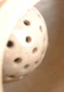![]() フタの取っ手は花のつぼみのようですね。 注ぎ口はクルッと巻かれてます・・・。 |