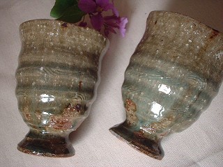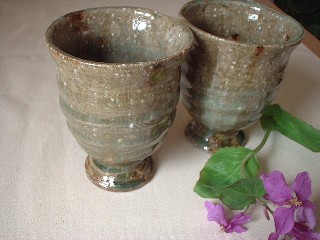 ・ZN009 足付きカップ(いちぢく) 価格 2310円(1客) サイズ 口径9*h11.5センチ いちぢくの灰を釉薬に使った 表情豊かなカップです。 灰釉の深いミドリにミドリ掛かった 水色のような溜まりが、、、独特な風合いです。 どっぷりとした深さのあるカップです。 sold out!! 有り難うございました。 御予約承ります。 |
