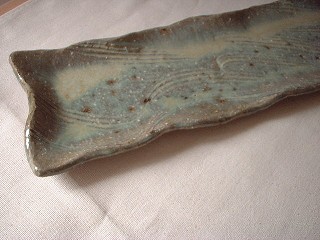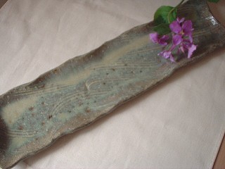 ・ZN0010 長皿(いちぢく) 価格 3990円(1客) サイズ 4隅幅43〜43.5・42(真中)*11*h1.5〜2センチ いちぢくの灰を釉薬に使った 表情豊かな長皿です。 細長い、細長い、、長皿です。 sold out!! 有り難うございました。 御予約承ります。 |