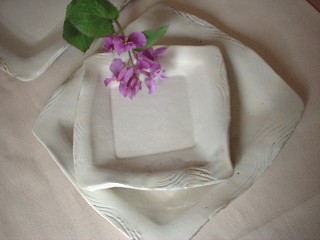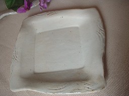 ・ZN008 粉引き角取皿 価格 1470円(1客) サイズ 15.5*h1〜2センチ 角取皿。。。なかなかおしゃれに出来あがりました。 ケーキにソースだって、大丈夫。 真中には四角のくっきりとした深さがつけられています。 縁にも櫛目がザザッ!!っとつけられ縁のラインも ナミナミ〜〜。優しい柔らかな粉引きには 素敵な器の表情とになっています。 在庫「3」 |