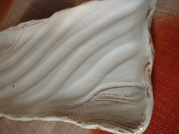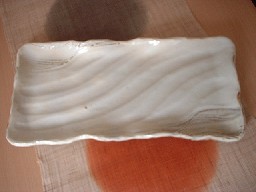 ・ZN0011 粉引き長皿 価格 3990円(1客) サイズ 31.5*15*h1.8〜2.5センチ 表面には大きめのしのぎで表情がつけられています。 4隅のうちの2ヶ所にも櫛目がざざっ! シンプルながら存在感を感じるうつわです。 sold out!! 有り難うございました。 御予約承ります。 |