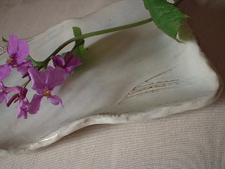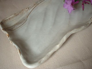 縁はナミナミ〜。長四角ながら、、、こんな緩やかな形が粉引きと共に柔らかな印象を持たせます。