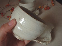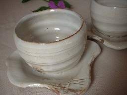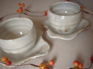 ・ZN006 粉引き湯呑セット 価格 2730円(1客) サイズ 湯呑 8.7*h7 思わず両手で包み込みたくなります。 お皿の形もユニークで へこみがありますから、湯呑もしっかり 納まるデザイン。 |